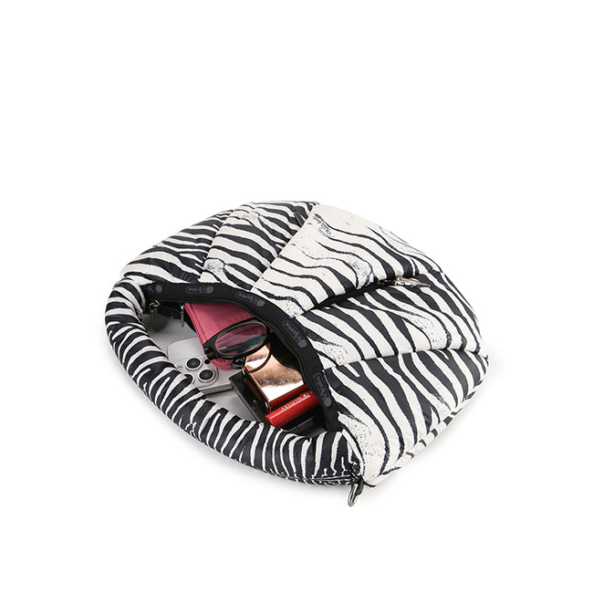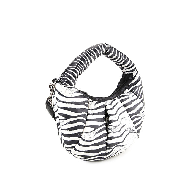 • The stylish Mini Zebra Venezia Small hobo bag features a soft padded design and a striking black-and-white zebra print