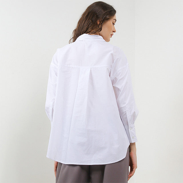 Deskripsi- Design: Classic oversized shirt with a relaxed and effortless look.