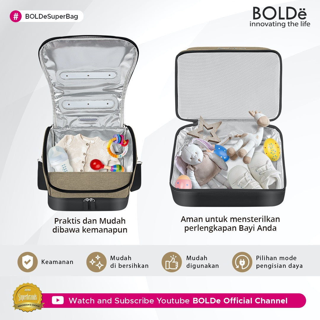 Menjawab kebutuhan akan produk yang inovatif, tas sterilizer Bolde dapat menjadi pilihan utama dalam membersihkan barang-barang kesayangan dari bakteri dan kuman. Sinar UV yang kami gunakan untuk proses sterilisasi adalah UV-C yang telah dimanfaatkan sejak dulu untuk membunuh kuman, mengurangi pertumbuhan mikrobiologis seperti jamur, bakteri, virus dengan membunuh DNA dan RNAnya. Teknologi UV-C ini banyak digunakan dalam lingkungan medis dengan tingkat desinfeksi yang tinggi.99% SterilizationLampu ultraviolet berkualitas tinggi, tingkat sterilisasi hingga 99%,memiliki refleksi multi sudut ultraviolet sehingga sterilisasi lebihmenyeluruh hanya dalam 3 menit.Environmentally Friendly MaterialMaterial ramah lingkunganbahan luar terbuat dari bahan poliester ramah lingkunganbahan dalam terbuat dari alumunium foil ramah lingkungan dan foodgradeSafe to uselapisan dapat menahan panas dan radiasi sehingga tidak berbahaya.Mudah digunakan hanya tinggal Tarik kabel lalu colokan ke adaptoratau powerbankmultifunctiondapat digunakan untuk mendisinfeksi botol bayi, mainan, ponsel,masker, alat kosmetik, pakaian dalam, dan kebutuhan sehari-harilainnya.Easy to cleanlapisan alumunium tahan air dan mudah dibersihkan. Anda hanya perlumenyekanya dengan lembutSafety lockjika penutup dibuka, magnet pada penutup dan magnet di belakangtombol akan terpisah dan sterilisasi akan terhenti untuk menghindaribahaya dari sinar ultravioletQuality control approvedlolos uji labolatorium sebelum pengemasan Voltage : 5 Volt Power : 2.1 Watt 6 LED Light