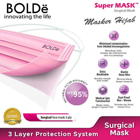 - Bolde Surgical Face Mask Headloop Isi 50 - Pink - Rp 99.000Harga satuan /Tidak tersedia