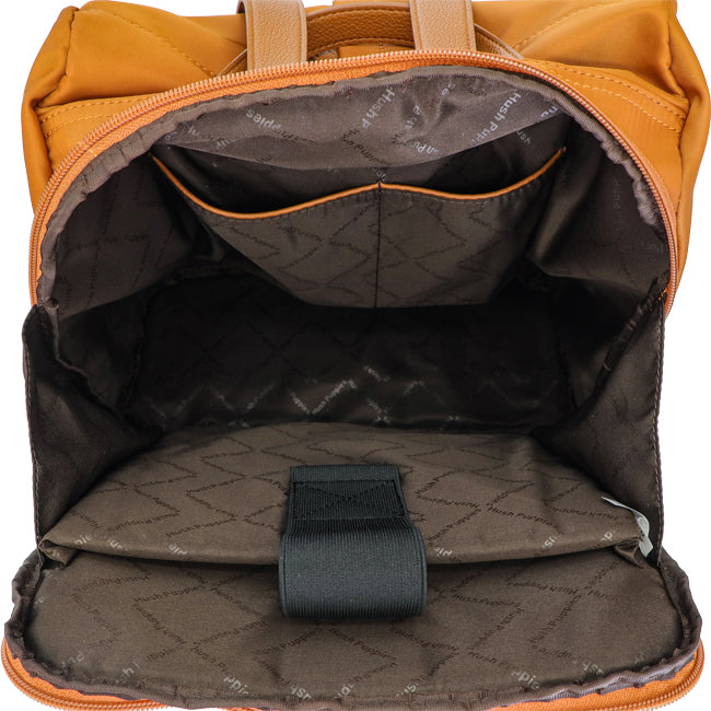 DeskripsiWater resistant Nylon Backpack back full zip closure, Adjustable backpack straps, 2 Side Pockets, Front Zip Compartment, Inner padded laptop compartment, Inner zip and slit pockets, Sateen cotton with HP Logo lining, Light gold plated hardware, HP Lettering Logo