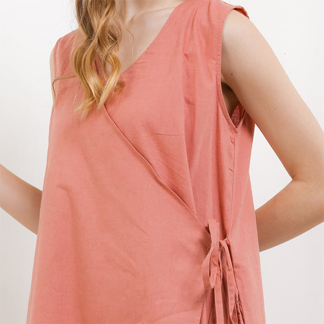 Design: A chic sleeveless wrap dress with a V-neckline, perfect for a feminine and elegant look.