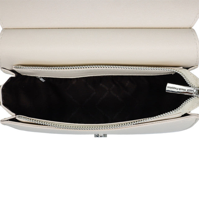 DescriptionTextured PU Half moon sling bag with top zip and magnetic flap closure, Half Chain-Half PU Adjustable long strap, Back Slit compartment , Inner zip and slit pockets, Sateen cotton with HP logo lining, Nickel plated hardware, HP Lettering Logo