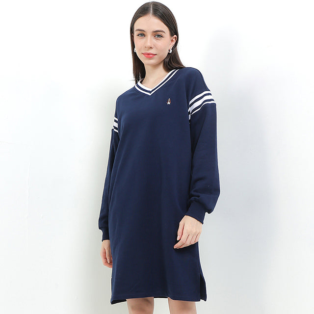 • Relaxed V-neckline ribbed dress